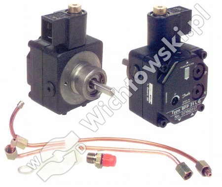 Pompa olejowa Danfoss BFP 21 L5 071N0172 ; jednostopniowa, wałek 8mm, nawa montażowa 32mm, zakres regulacji ciśnienia 7-20 bar, wydajność 40 l/h, kierunek obrotów - lewe, wyjście na dyszę - prawe/lewe